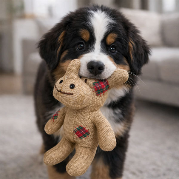 Fabricado con fibras naturales resistentes, este muñeco está diseñado para morder, sacudir y jugar sin parar. Su textura estimula el hocico y las encías, ayudando a liberar estrés y mantenerlo entretenido por más tiempo.